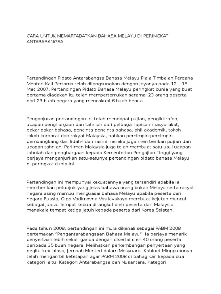 Cara Untuk Memartabatkan Bahasa Melayu Di Peringkat Antarabangsa Pdf